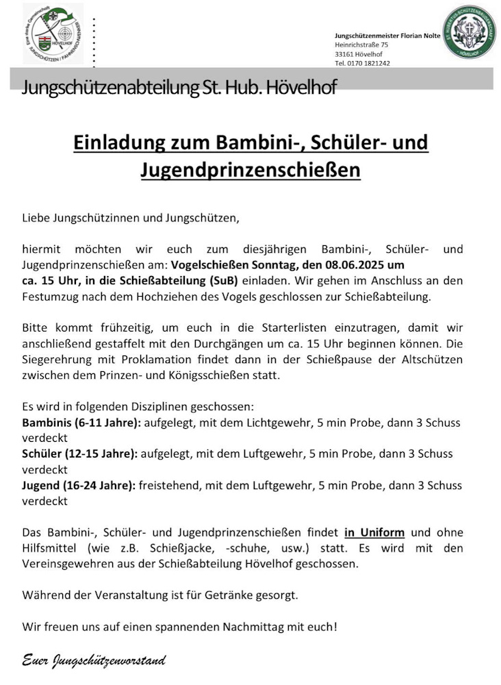 Bambini, Schüler & Jugendprinzenschießen 2025