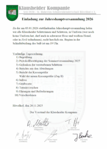 Jahreshauptversammlung 2026 00 Tage 00 Stunden 00 Minuten 00 Sekunden Datum Jan. 03 2026 Uhrzeit 19:00 - 23:55