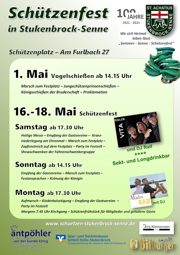 Schützenfest Stukenbrock-Senne 2026 00 Tage 00 Stunden 00 Minuten 00 Sekunden Datum Mai 17 2026 Uhrzeit 14:15 - 18:00