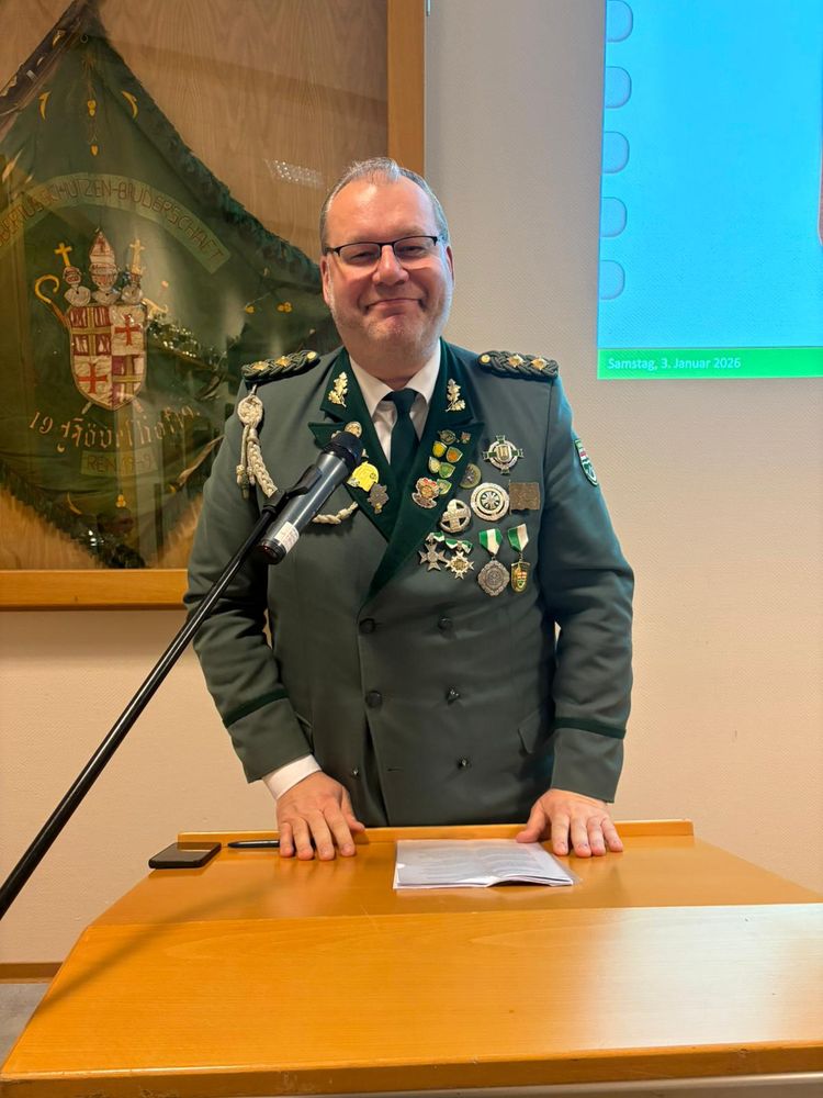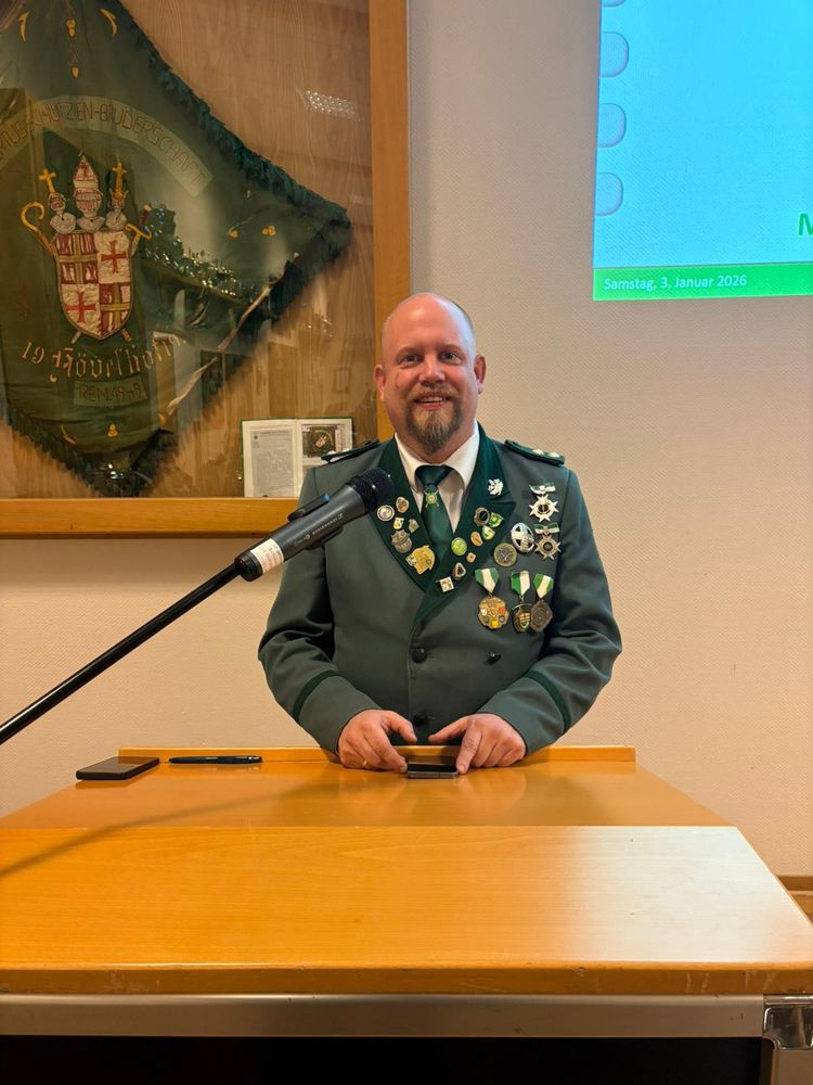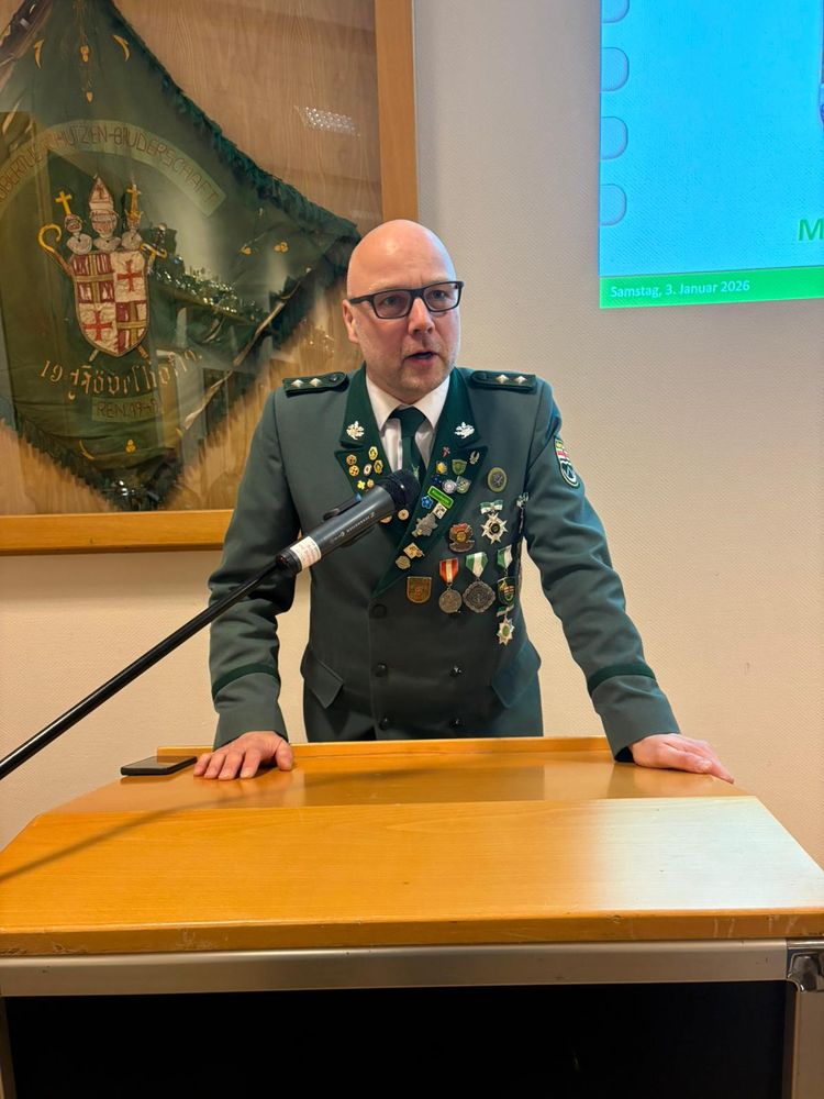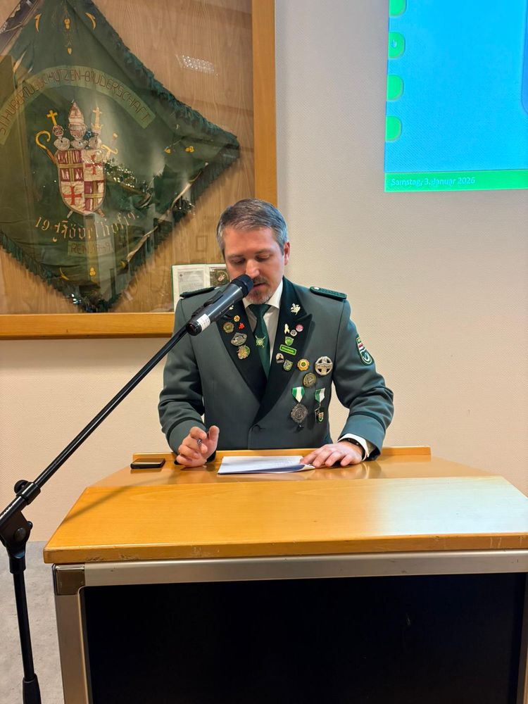 Nach unserem Oberst gab auch unser Kompaniechef eine kurze Übersicht auf die Termine für 2026 und gab den Hinweis, sich vermehrt auf der Schützen-App und der Klausheider Homepage diesbezüglich zu informieren.