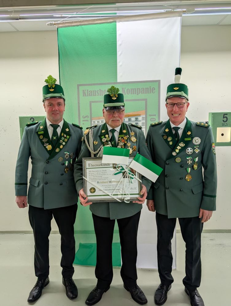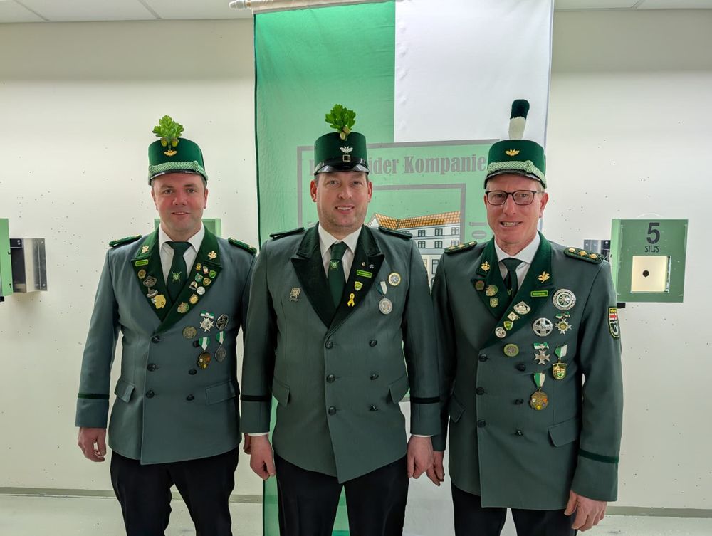 Nach den Beförderungen wurden besondere Ehrungen ausgesprochen. Drei sehr verdiente Schützen unserer Kompanie wurden zu Ehrenoffiziere ernannt.